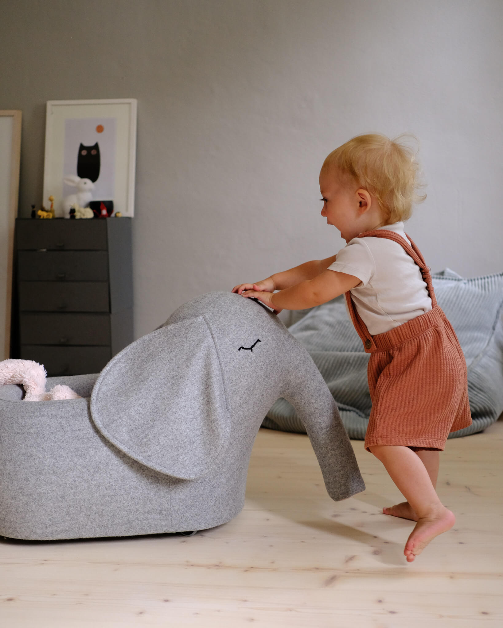 Unsere Kollektion an Spielmöbeln unterstützt die motorische, sensorische und kognitive Entwicklung deines Kindes. Beim Schaukeln, Balancieren, Hüpfen, Rollen, Beladen, Schieben, Ziehen etc. werden Koordination, Konzentration, und räumliches Denken trainiert. Das alles passiert natürlich durch Spiel, Bewegung und Fantasie. Zusätzlich laden die Spieltiere durch ihre weiche Polsterung und dem warmen Stoff zum sensorischen Entspannen und Kuscheln ein.
