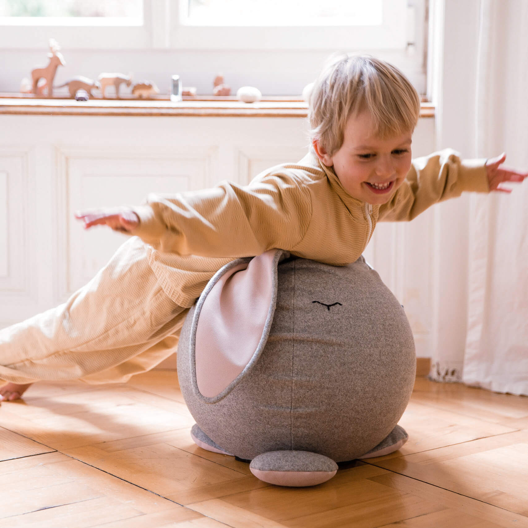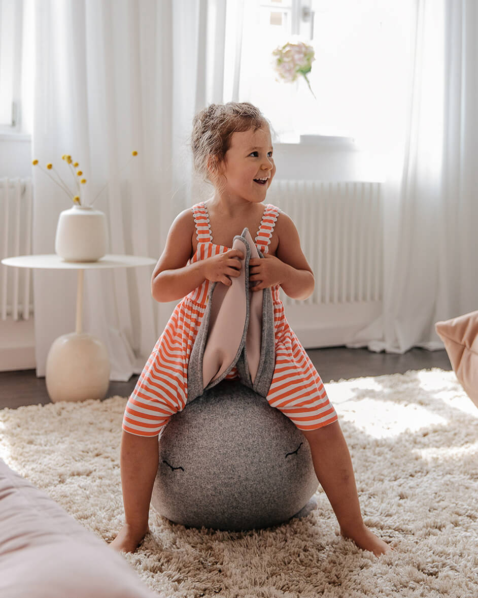 Der Hüpf-Hase "da" ist ein fröhlicher Gefährte voller Energie - ein Hüpfball, Spielfreund und ergonomischer Sitzball in einem.
