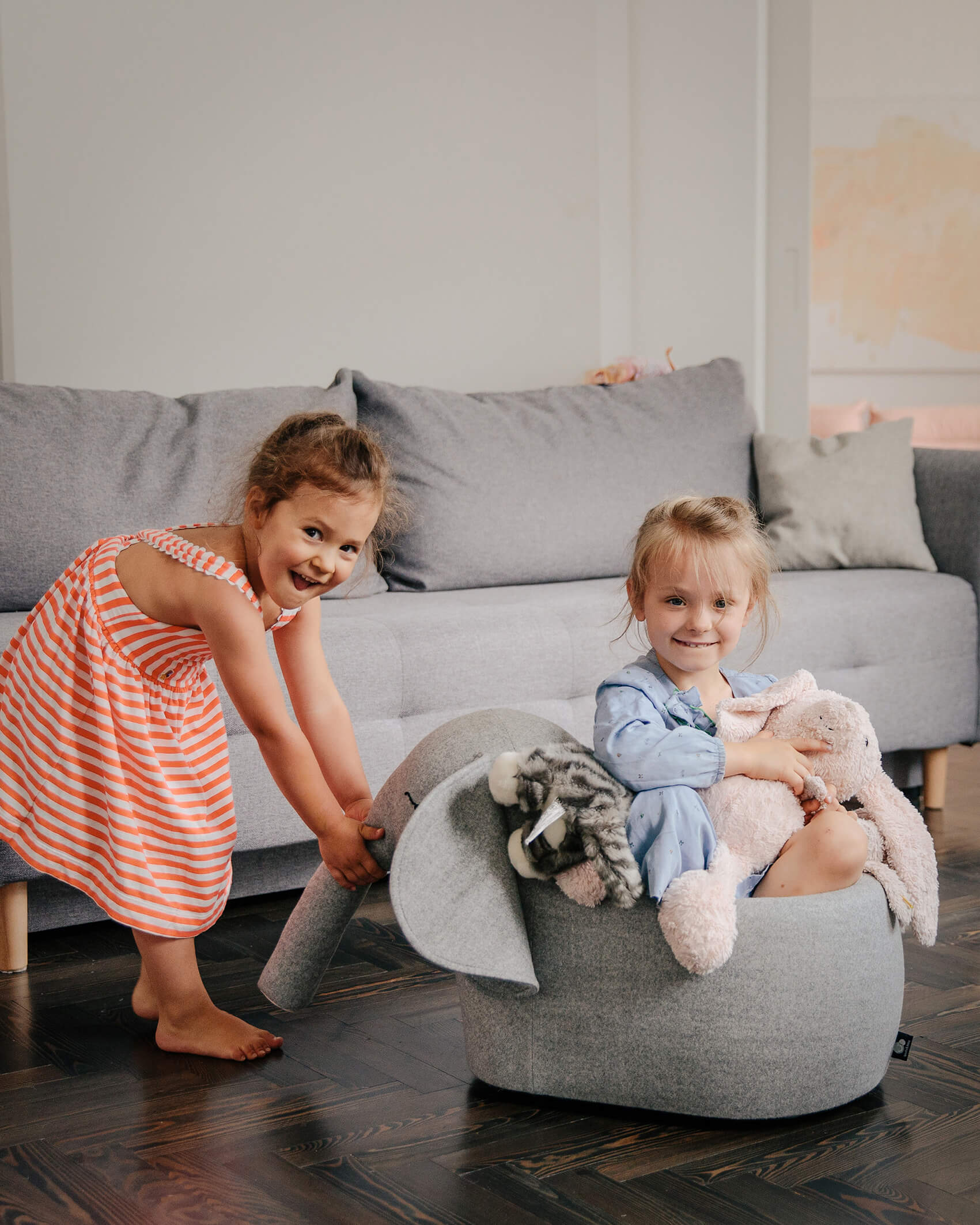 Roll-Elefant „bou“ ist mehr als ein Rutscher oder Kinderfahrzeug – er ist ein weicher Freund auf Rollen, ein Lieblingsplatz und Aufräumhelfer in einem.