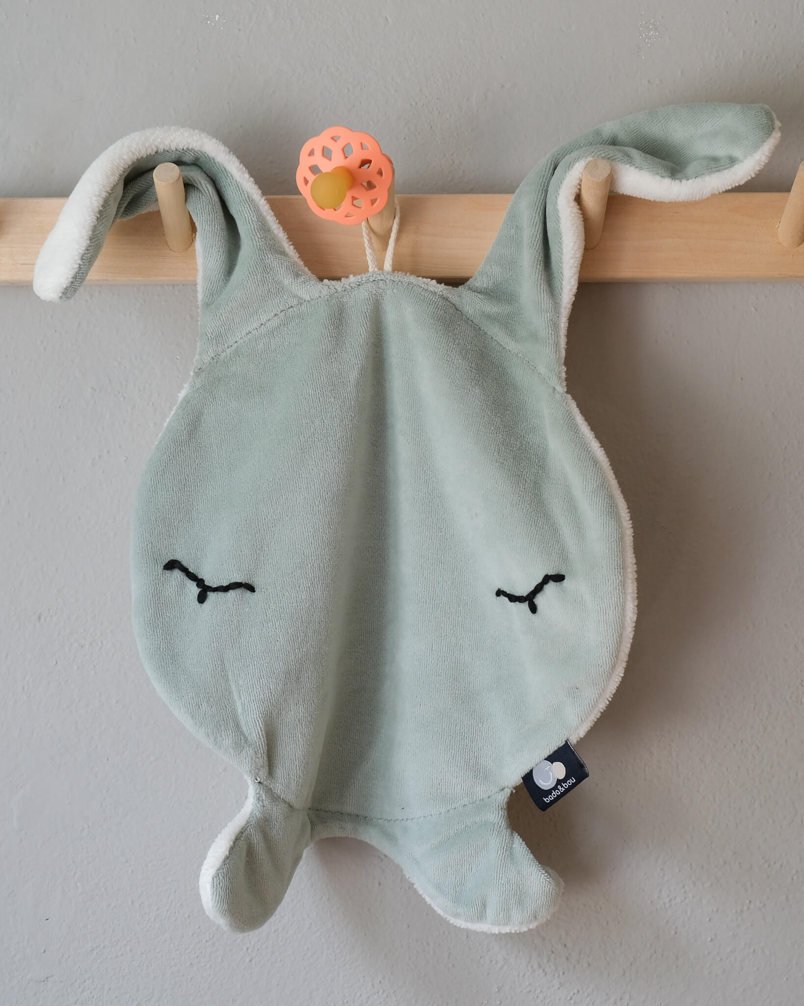 Tinybou ist der erste und treue Freund deines Babys – immer da, zum Kuscheln, Trösten und Liebhaben. Ein weiches Schmusetuch, ein kleiner Begleiter und zugleich ein praktischer Schnullerhalter – so zart und vertraut, dass man ihn gar nicht mehr loslassen möchte.